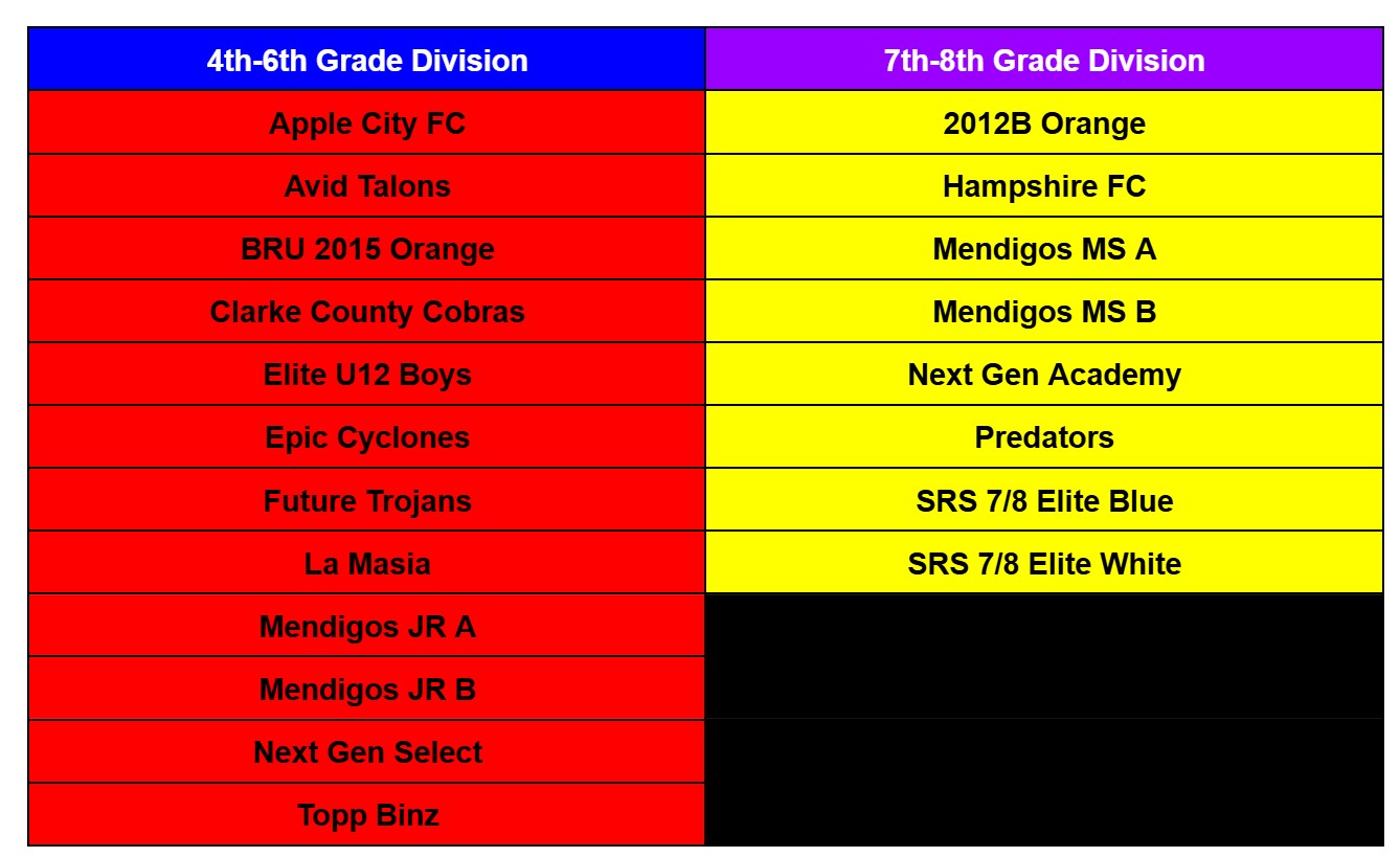 As of January 1, 2026 at 8:00AM, we are NO LONGER accepting team registrations for the following divisions: